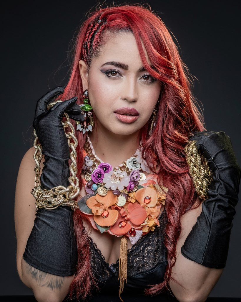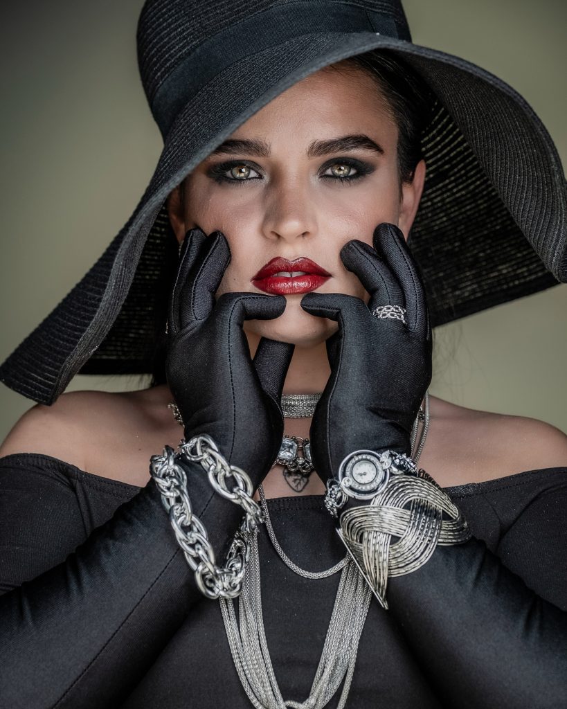 Por su parte, Cielo desplegó una energía diferente pero igualmente fascinante: la del enigma y la seducción. Su presencia ante la cámara nos transportó al universo de Mata Hari, la mítica espía y bailarina. Su pose firme, su mirada intensa y los elementos del set crearon un aura de misterio que atrapó al objetivo con una fuerza innegable.